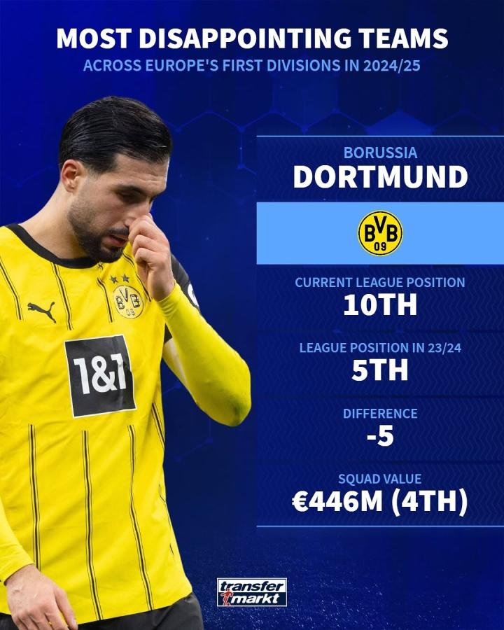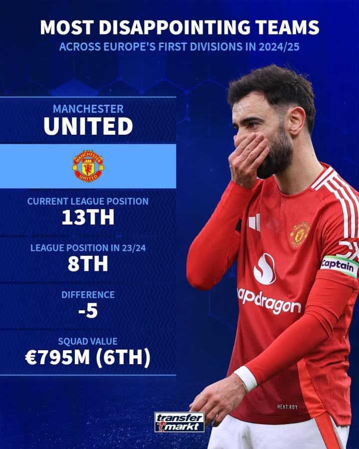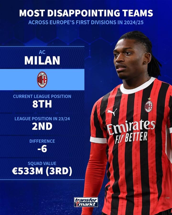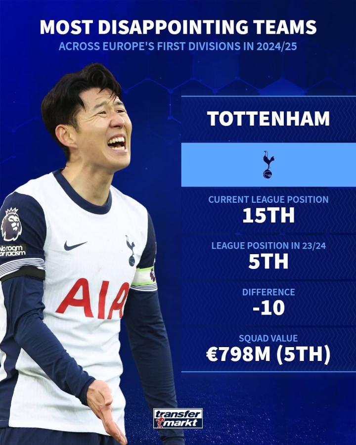 1月22日,德国转会市场在社交媒体上公布了让人失望的球队名单,其中包括曼联、托特纳姆热刺、AC米兰和多特蒙德等豪门。这些球队在赛季至今的表现让人大跌眼镜。