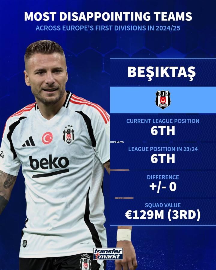 土超球队贝西克塔斯也在本赛季表现低迷。总身价接近1.3亿欧元的他们排名联赛第六,被加拉塔萨雷和费内巴切甩开差距。尽管队内拥有多名知名球员,但贝西克塔斯的实力和排名存在较大背离。